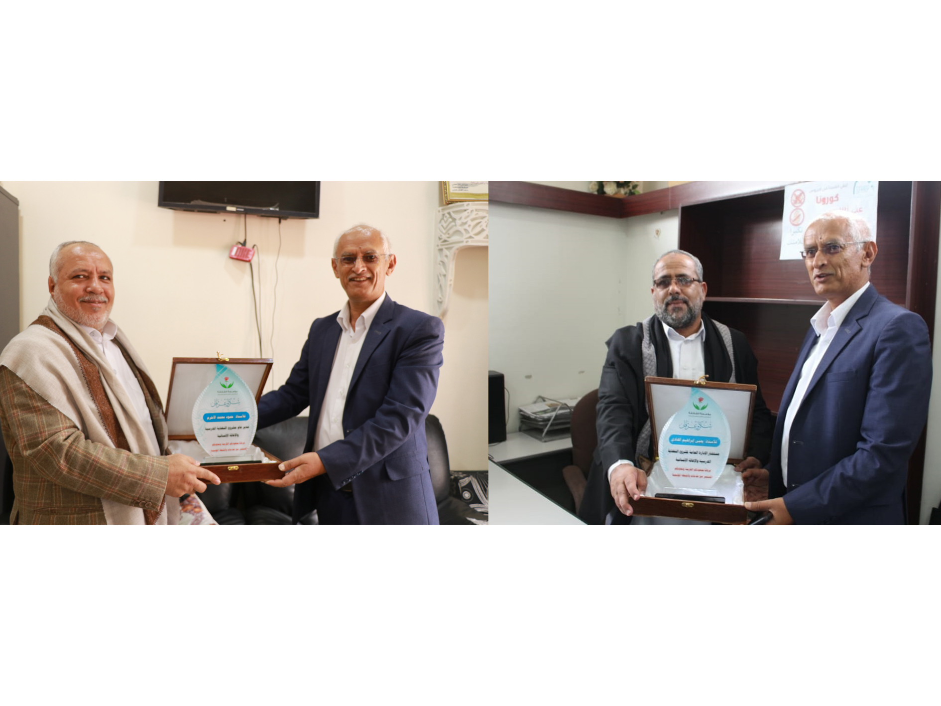 ومنح الأستاذ واثق القرشي درع مؤسسة الشفقة للأستاذ حمود الأخرم والاستاذ يحيى الهادي ، تعبيراً عن إمتنان المؤسة ومرضاها لما يبذلانه من جهود في سبيل خدمتهم وتذليل كافة الصعاب امامهم.