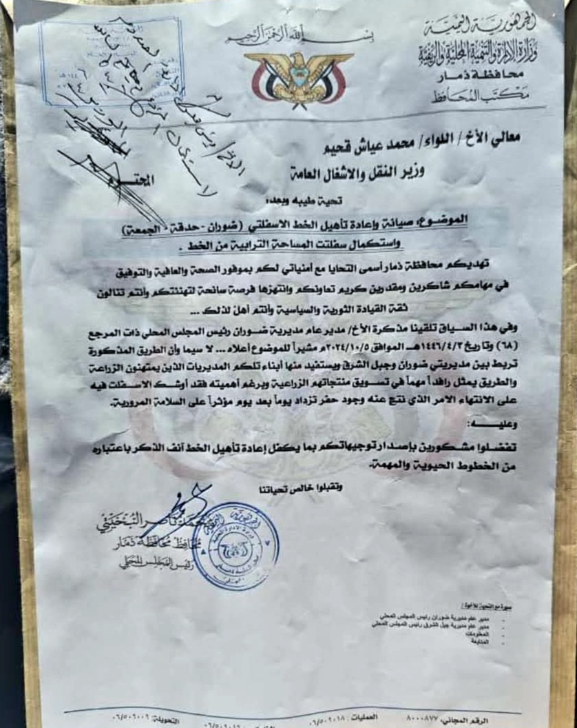 وأكد قحيم أهمية هذا المشروع الحيوي في تصريف مياه الأمطار التي تتراكم وتلحق أضرار بالطريق وتعيق حركة السير وما تشكله من بيئة مناسبة لظهور وانتشار الأمراض الوبائية، كالملاريا والكوليرا وغيرها من الأمراض المعدية التي تهدد صحة المواطنين خاصة في موسم هطول الأمطار.
