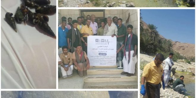 وخلال الزيارة أكد د. سعيد أن القواقع ( snails ) المتواجدة هي قواقع طفيل البلهارسيا حيث تتواجد بكثرة في منطقة عسد الجبل نتيجة الأمطار والسيول والمياه الراكدة ، ثم قام الطلاب وفريق العمل بجمع بعض العينات فحصها في المختبر الذي أكد وجود بويضات البلهارسيا في عينات القواقع.
