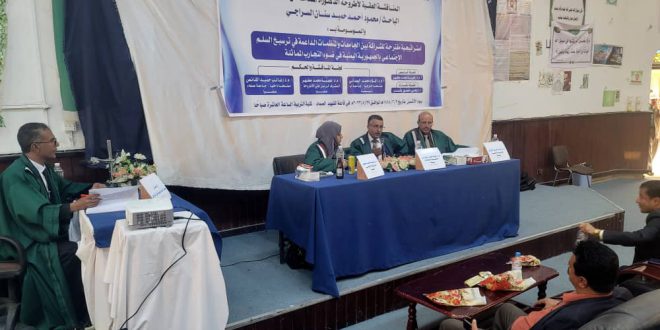 حصل الباحث اليمني محمود أحمد حميد سنان السراجي على درجة الدكتوراه في أصول التربية من جامعة صنعاء بعد دفاع علني ناجح ولافت عن أطروحته الموسومة بـ “استراتيجية مقترحة الشراكة بين الجامعات والمنظمات الداعمة في ترسيخ السلم الاجتماعي بالجمهورية اليمنية في ضوء التجارب المماثلة” .