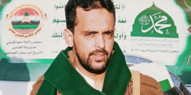 هنأ المجاهد الشيخ مالك بن رزاز العواضي مسؤول مجلس التلاحم القبلي في مديرية العدين .