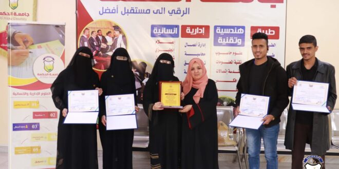 كرم نائب رئيس الوزراء لشئون الخدمات والتنمية الدكتور حسين مقبولي ووزير التعليم العالي و البحث العلمي حسين حازب اليوم جامعة الحكمة بدرع الوزارة وميداليات وشهادات تقدير لحصولها على المركزين الثالث في بطولة كرة الطائرة والثاني في المسابقة التنافسية العلمية على مستوى الجامعات اليمنية للعام الجامعي 1444هـ بمجال إدارة الأعمال.