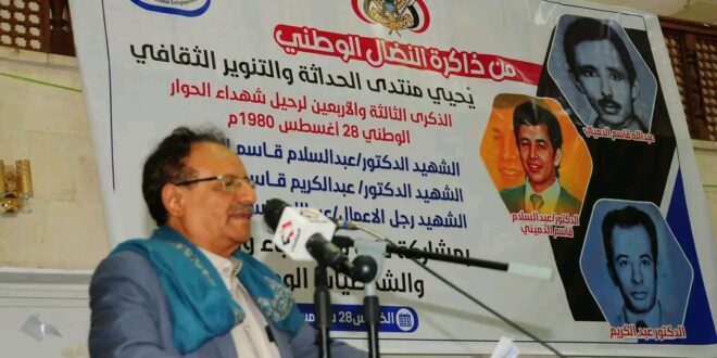احتفى منتدى الحداثة والتنوير الثقافي صباح الخميس بالذكرى الثالثة والأربعين لاستشهاد كل من المناضل الشهيد عبدالسلام الدميني، والشهيد الدكتور عبدالكريم قاسم الدميني، والشهيد رجل الأعمال عبدالله قاسم الدميني. وذلك بحضور جمع غفير من الشخصيات الوطنية والثقافية الذين امتلأت بهم قاعة بيت الثقافة بصنعاء.