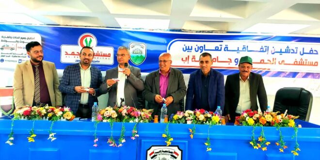 شهدت صباح اليوم جامعة إب حفل تدشين إتفاقية التعاون المشترك بين الجامعة ومستشفى الحمد و توزيع بطائق الرعاية الصحية التي تتراوح نسب التخفيضات في تكاليف كافة الخدمات الطبية بين 50% إلى 100% وتشمل كافة منتسبي الجامعة من الأكاديميين والإداريين والطلبة .