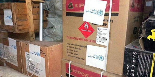 قدم مكتب منظمة الصحة العالمية في محور تهامة مجموعة من المولدات الكهربائية والمكيفات وحزمة متكاملة من الخيم بأحجام متعددة، بالإضافة إلى 72 جهاز آيباد.
