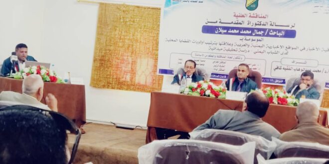 ففي تمام العاشرة صباحا، بدأت وقائع المناقشة العلنية لرسالة الدكتوراه المقدمة من الأكاديمي والصحفي الاستقصائي المدرس بالكلية/ جمال سيلان، والموسومة بـ (مصداقية الأخبار في المواقع الإخبارية اليمنية والعربية وعلاقتها بترتيب أولويات القضايا المحلية لدى الشباب اليمني- دراسة تحليلية ميدانية، والتي أشرف عليها أستاذ الإعلام والاتصال السياسي البروفيسور/ محمد عبد الوهاب الفقيه كافي.