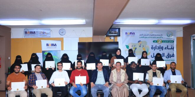 وفي ختام البرنامج تحدث الأستاذ توفيق الحكيمي نائب المدير التنفيذي لمؤسسة نماء للتنمية والتمويل الأصغر عن أهمية البرنامج التدريبي وتأثيره الإيجابي في تطوير مهارات بناء وإدارة فرق العمل لدى المشاركين.