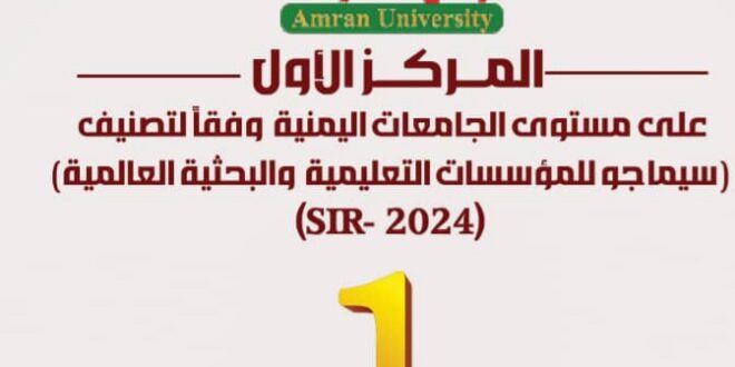 استمراراً لتميزها في جميع المستويات تصدرت جامعة عمران الجامعات اليمنية وحققت تميزاً كبيراً بحصولها على المركز الأول في تصنيف سيماجو للمؤسسات التعليمية والبحثية العالمية على مستوى الجامعات اليمنية وتميزت في مجال البحث العلمي وحققت المرتبة 3530عالمياً وبشكل عام حققت المرتبة 7201 عالمياً..