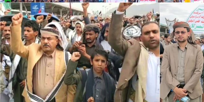 وجددت الحشود التي رفعت أعلام اليمن وفلسطين ولبنان وإيران والعراق، تفويضها المطلق لقائد الثورة السيد عبدالملك بدر الدين الحوثي، والتأكيد على الاستعداد والجهوزية لكل التطورات المحتملة في مواجهة أعداء الأمة أمريكا وإسرائيل وأذنابهم.